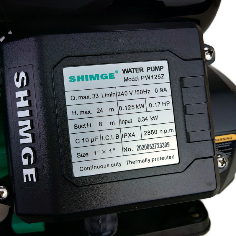 SHIMGE PW125Z FULLY AUTOMATIC SELF-PRIMING BOOSTER PUMP for COLD AND HOT WATER